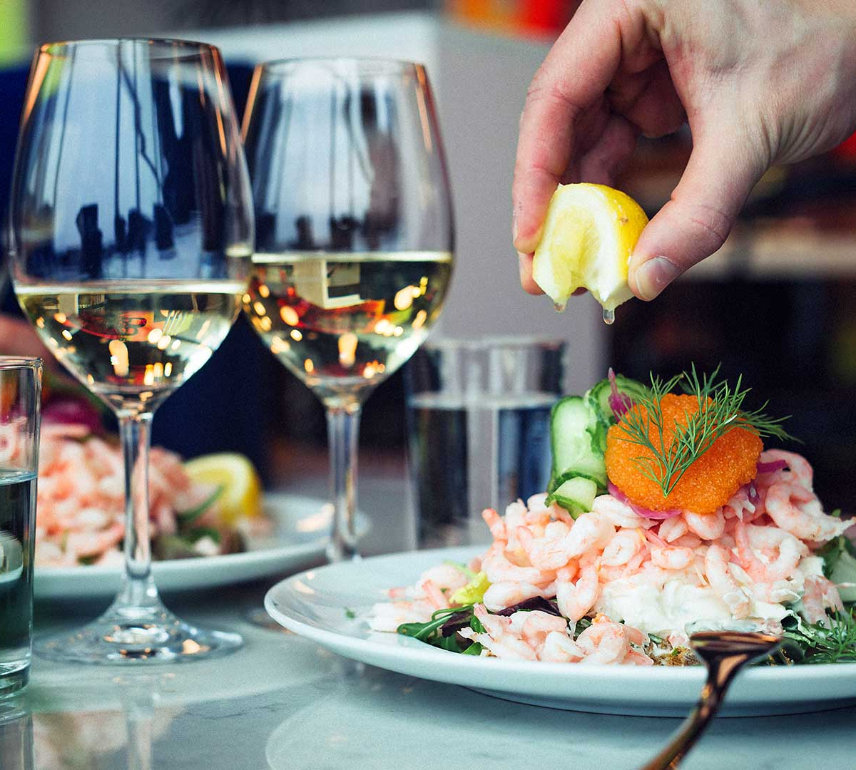 Här kan du även njuta av Göteborgs bästa räkmacka, sallader, färska juicer, smoothies och gott kaffe och mycket mer. Här sitter du bekvämt för möten, för dagens lunch eller kvällens after work med vännerna.